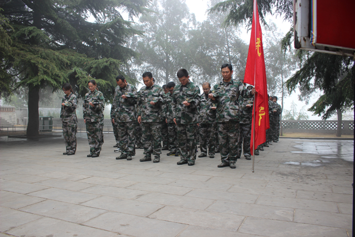 军事训练活动前,全体机关干部到革命烈士纪念碑前敬献花篮、缅怀革命烈士。